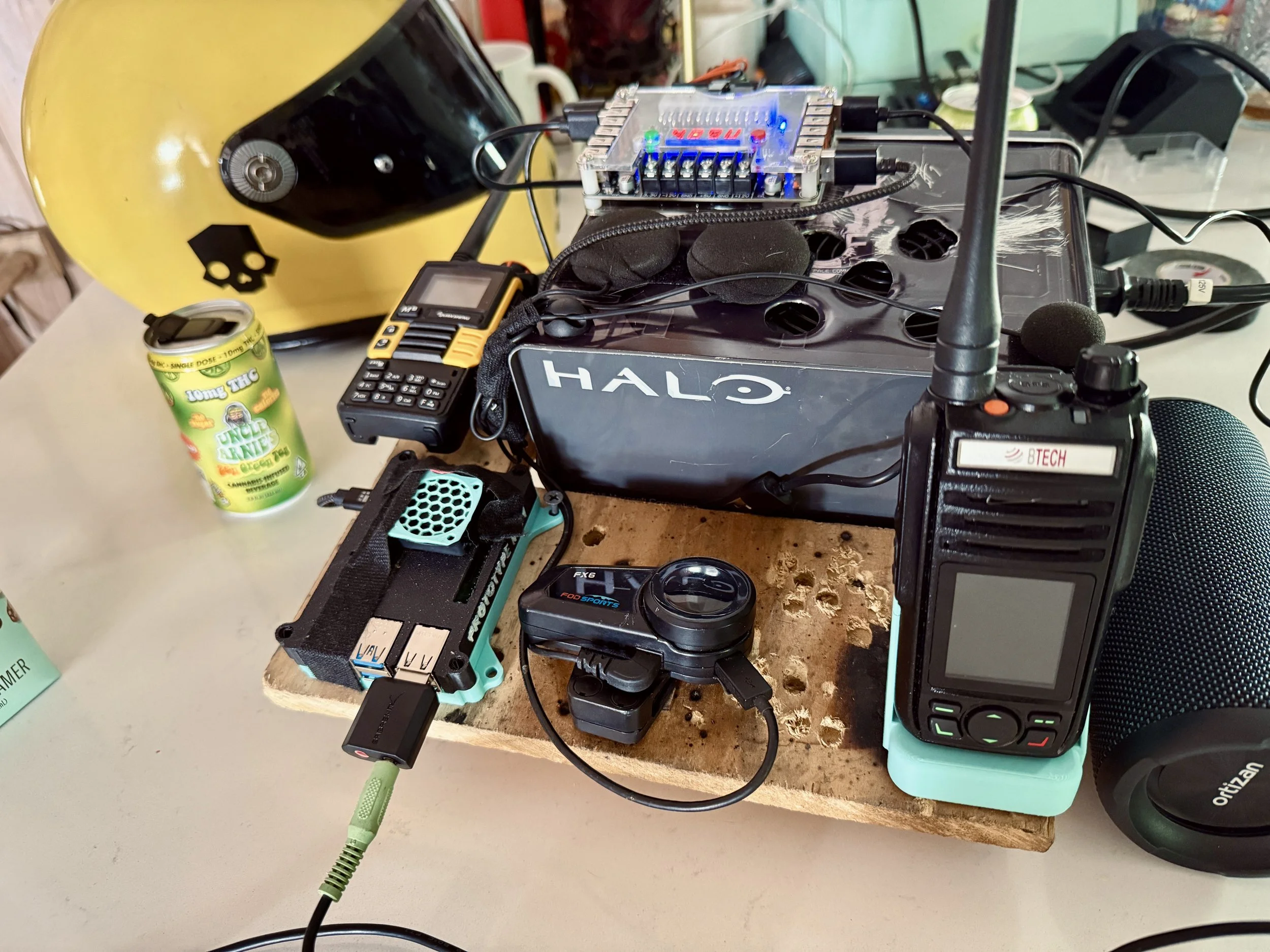 Using a raspberry pi 5, A UHF handheld radio, and a ESP32 board with LoRa, I have created a central hub for all things audio and communication while riding.